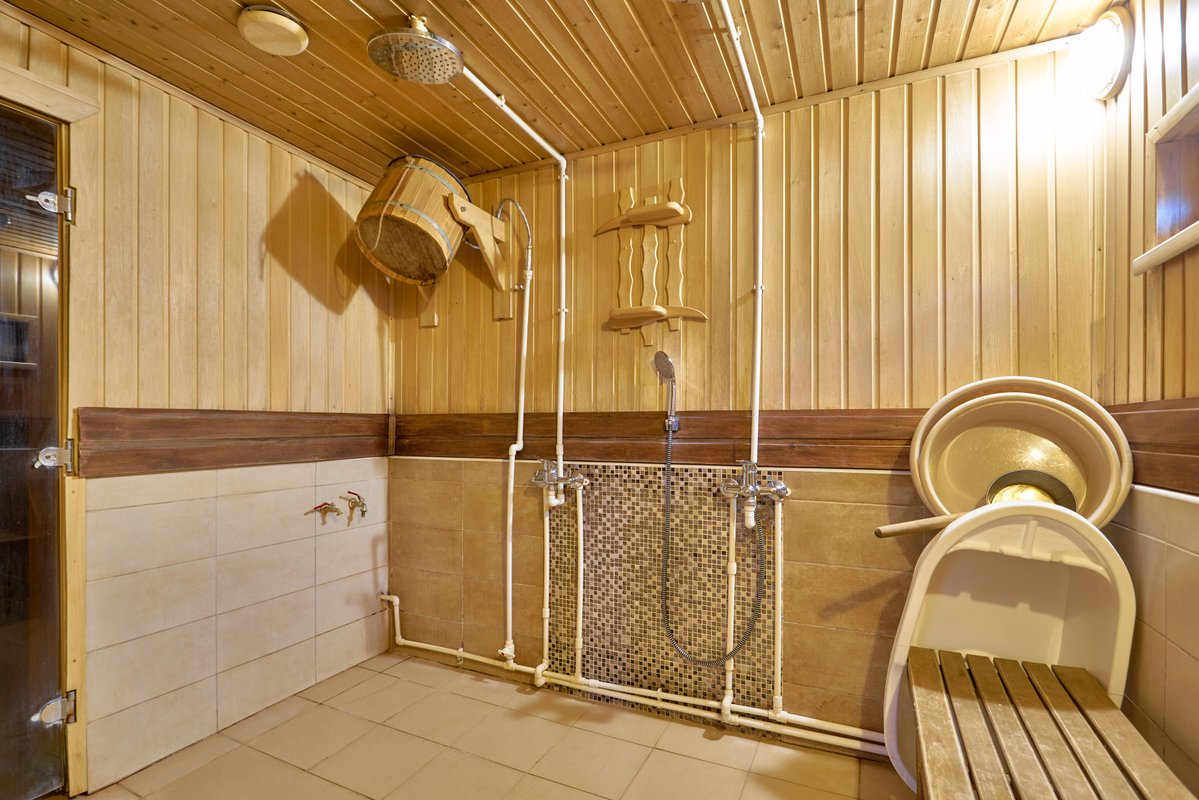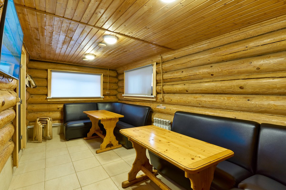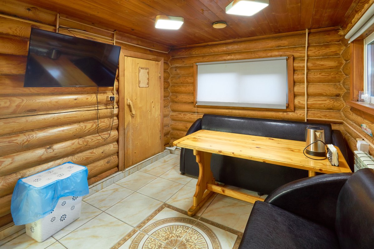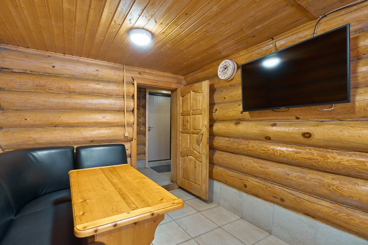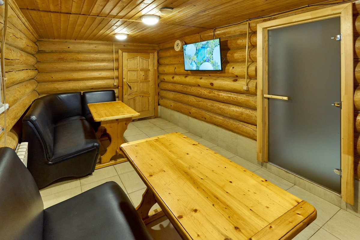 В бане для нас присутствовало всё необходимое: был санузел, раздевалка, тамбур и даже телевизор. В этом плане всё отлично!