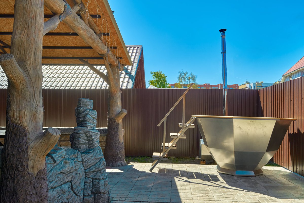 Баня на дровах была очень жаркая, а купель холодная, что отлично для нас! Когда приезжали, нам привезли дополнительные дрова, чтобы баня стала еще горячее, мы провели в ней около двух часов.
